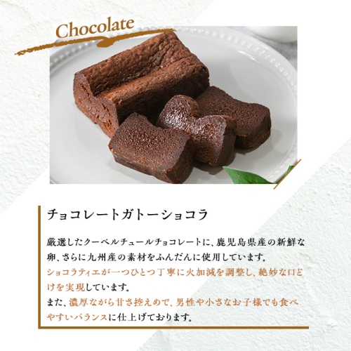 厳選したクーベルチュールチョコレートに、鹿児島県産の新鮮な卵、さらに九州産の素材をふんだんに使用しています。