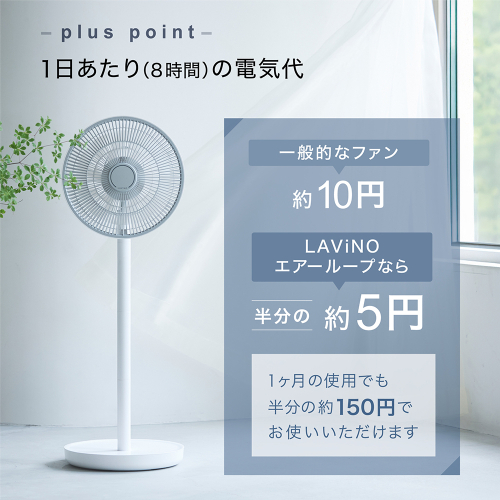 ラビーノ エアーループは、6段階に風量調節が可能。風を細かく調節できるため、扇風機としてもサーキュレーターとしても使えます。