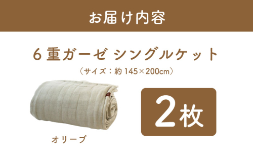 【スピード発送】“癒しのとろふわ”泉州南部織-toronto-/6重ガーゼシングルケット 2枚(オリーブ) G2917 2193134 - 大阪府泉佐野市