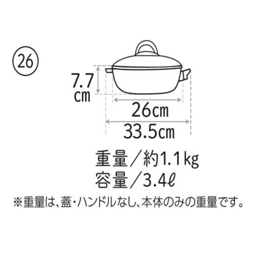●サイズ/外径26×高さ7.7×最大長46.5(ハンドル取外時:最大長33.5)cm