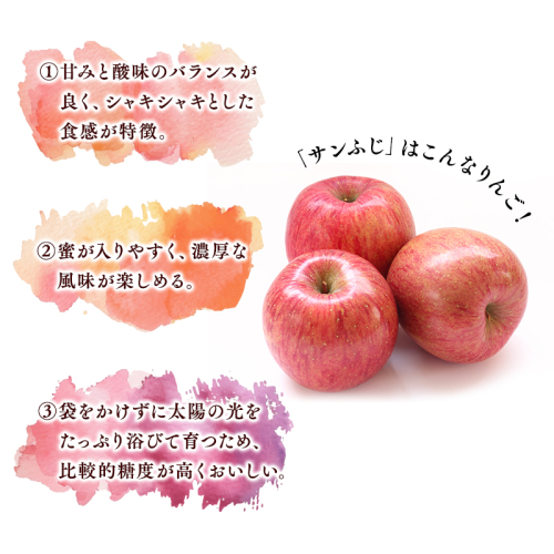 太陽の光をたっぷり浴び育ったりんごは、甘さのなかにも酸味を感じる爽やかな味わいです。