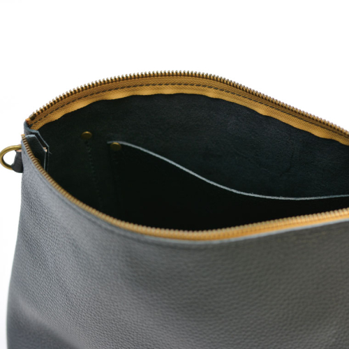 • 益子の革工房maharoのショルダーポーチ ワイド(L)ブラック|栃木県 益子町 ふるさと納税 ショルダーポーチ ワイド 牛革 手作り(AX137)