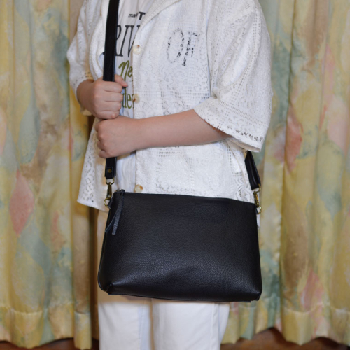益子の革工房maharoのショルダーポーチ ワイド(L)ブラック|栃木県 益子町 ふるさと納税 ショルダーポーチ ワイド 牛革 手作り(AX137)