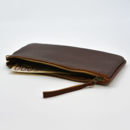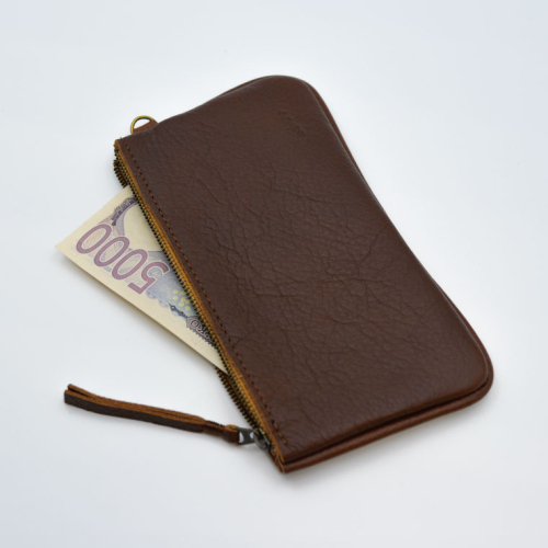 手馴染みのよいソフトな牛革を使用した、お札が入るサイズのポーチです。