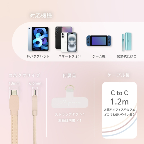 - Owltech スマートフォン用ショルダーストラップ&USB Type-C to USB Type-C 充電ケーブル Mignonne(ミニョン) OWL-CBX2MIN07CC-AR アッシュローズ 【 ガジェット 海老名市 】