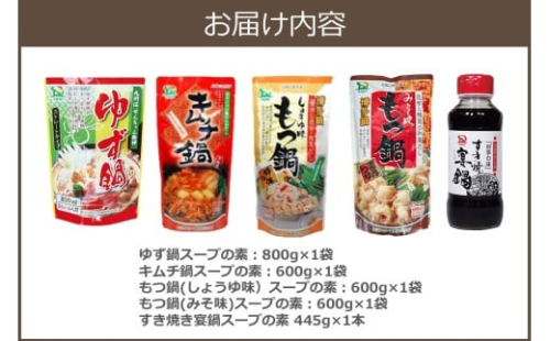 (ゆず鍋スープの素・キムチ鍋スープの素・もつ鍋しょうゆ味スープの素・もつ鍋みそ味スープの素)
