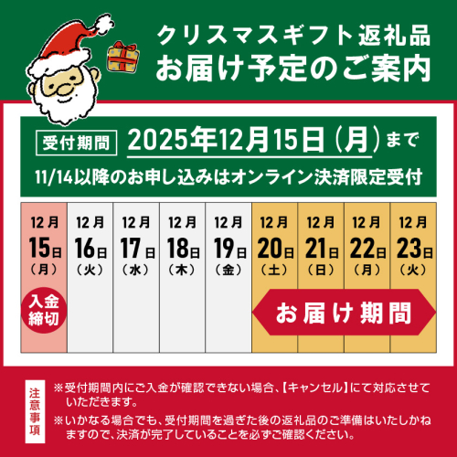 ・2025年12月20日(土)~12月23日(火)までに順次お届けします。