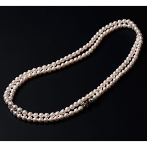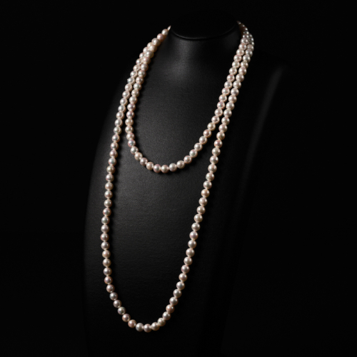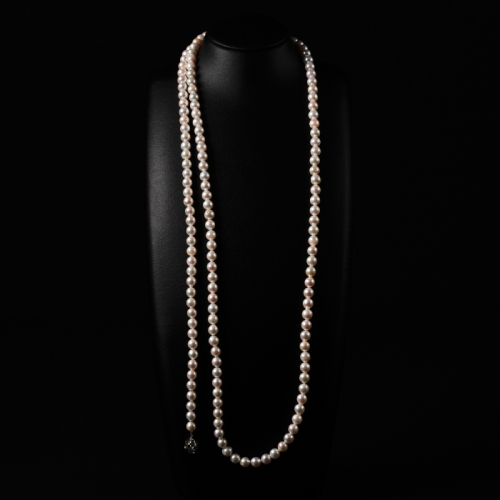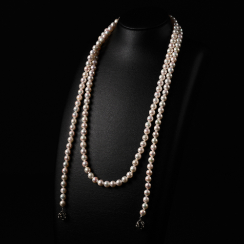 アコヤ真珠を贅沢に使用し、使いやすい120cm程の長さでお作りします。