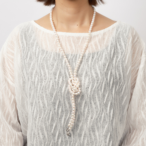 こちらは通常のロングネックレスとは異なり、自由自在に様々な使い方ができ、カジュアルにもフォーマルにもお洒落にお使いいただけるロングネックレスです。