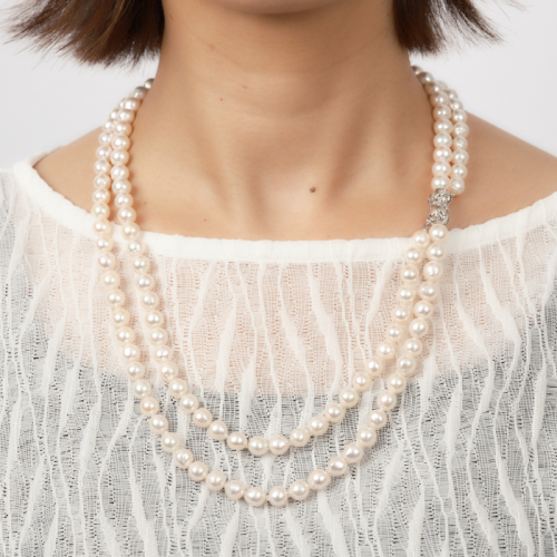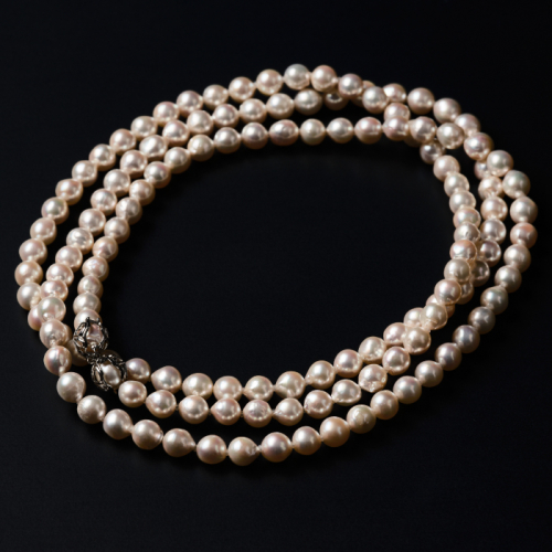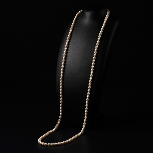 アコヤ真珠を贅沢に使用し、使いやすい120cm程の長さでお作りします。