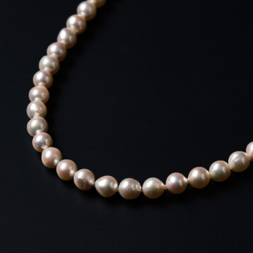 通常の球形(ラウンド・パール)以外の変形珠で、ドロップ形、エッグ形、ボタン形などのセミラウンドを除いた不定形のグループをバロック真珠と呼びます。