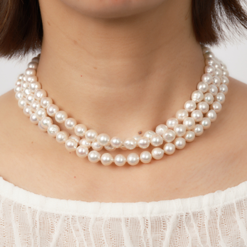 - 8-8.5アコヤ真珠120cmセミバロックロングネックレス:C520-003