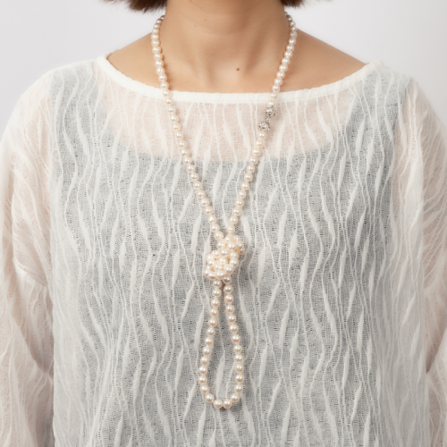 こちらは通常のロングネックレスとは異なり、自由自在に様々な使い方ができ、カジュアルにもフォーマルにもお洒落にお使いいただけるロングネックレスです。