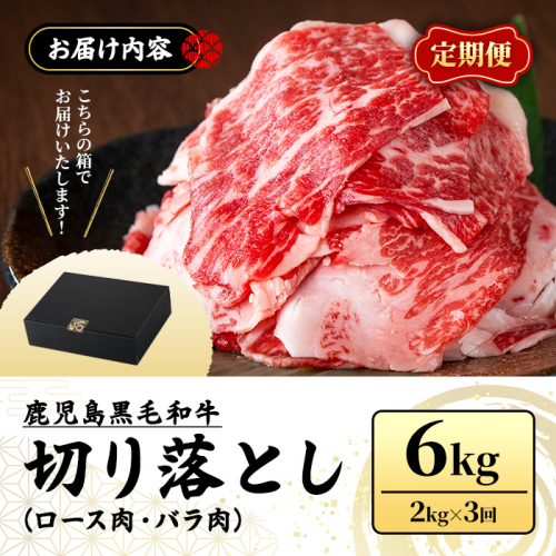 • No.1233 <定期便・全3回>訳あり!鹿児島黒毛和牛ロース・バラ切り落とし(計6kg)【NBフード】