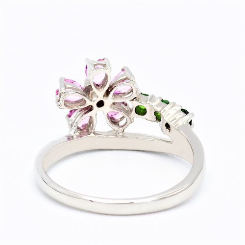 - ピンク サファイヤ 桜モチーフ リング 0.70ct Pt900 (13523) 指輪 リング サファイヤ ピンクサファイヤ プラチナ Pt900 グリーンガーネット ダイヤモンド ジュエリー アクセサリー 山梨県 甲斐市 BR-89