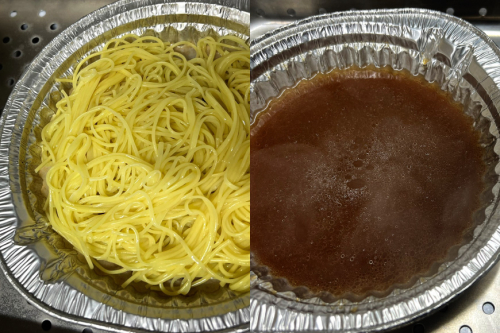 小麦粉、食塩、小麦グルテン、食用植物油、かんすい、くちなし色素、動物油脂(国内製造)、醤油、食塩、鮪節、砂糖、ポークエキス、みりん、マグロエキス、マグロスープ、チキンエキス、たん白加水分解物、酵母エキス/調味料(アミノ酸等)酒精、カラメル色素、増粘剤(キサンタンガム)、酸化防止剤(ビタミン E) 、ローズマリー抽出物、(一部に小麦・大豆・豚肉・ごま・さばを含む)長ネギ・まぐろ