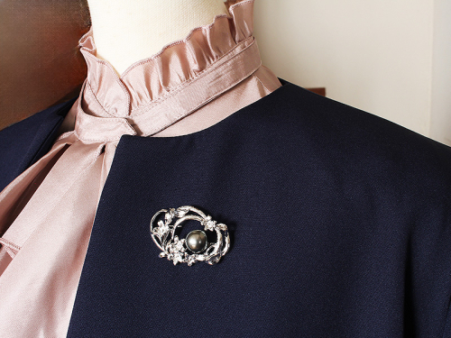 フォーマルにも華やかな装いにも映える、洗練されたブローチです。 ブローチの落下を防ぐブローチストッパー付