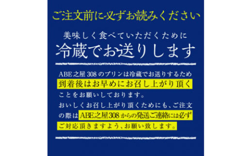 ※ABE之屋308のプリンは冷蔵でお送りするため、到着後はお早めにお召し上がり頂くことをお願いしております。