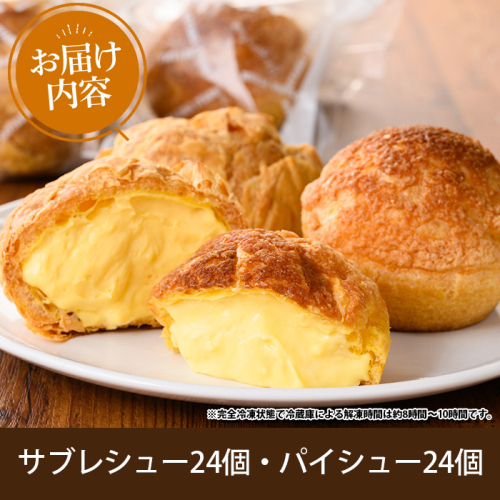 サクサク焼き立ての生地に朝一手炊きの特製カスタードクリームを詰め、急速冷凍しております。 出来立ての美味しさをぜひご賞味ください。 ※48個セットは内箱なしでお届けしますので、ご家庭でお楽しみください。 保存方法:冷凍 生菓子ですので、冷蔵庫にて保管され、解凍後はその日のうちにお召し上がりください。 (完全冷凍状態のものの冷蔵庫による解凍時間は約8時間〜10時間です。) 地場産品基準類型3:当該地方団体の区域内において返礼品等の製造、加工その他の工程のうち主要な部分を行うことにより相応の付加価値が生じているもの。