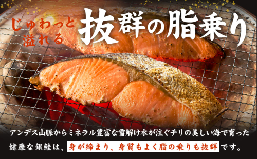 アンデス山脈からミネラル豊富な雪解け水が注ぐチリの美しい海で育った健康な銀鮭は、身が締まり、身質もよく脂の乗りも抜群です。程よい脂のりの甘塩銀鮭を食べやすいよう切り身にしてお届け致します。