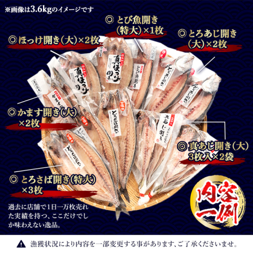 - No.406-B 大きめ干物詰合せ<合計3.6kg> 干物 セット 詰め合わせ ひもの 魚介類 魚 おかず おつまみ お楽しみ 【みのだ食品】
