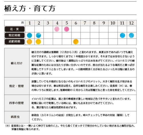 イロハモミジは四季折々に葉の色を変える品種です。 緑の葉から紅葉へと黄色の変化を楽しめます。 日本では最もよく見られるカエデ種で、紅葉の美しい代表とも言える樹木です。 当社では、このイロハモミジを自社生産しています。 ■事業者名 有限会社 井本緑化資材 【地場産品に該当する理由】 熊本県が認定した共通返礼品:町内の造園業者が生産した苗木。(告示第5条 第1号に該当) もみじ 紅葉 国産 自社生産 ガーデニング 樹木 苗木 単木 お庭 シンボルツリー 育てやすい 上へ成長 樹高が高くなる 落葉樹 庭木 日本家屋 和風 デザイン住宅 洋風 馴染む 庭園 お庭 庭 送料無料 人気 おすすめ 熊本県 甲佐町