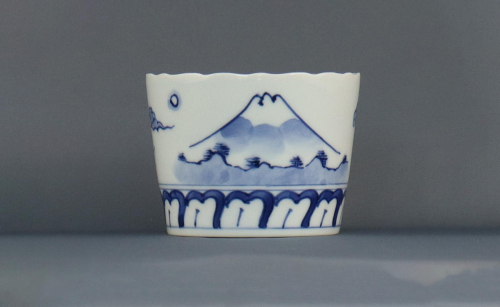 江戸期の古伊万里の雰囲気そのままに再現した「富士」柄のそばちょこ2種。