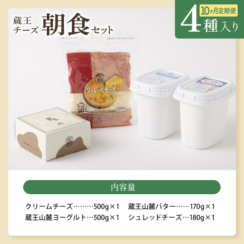 - 【10か月定期便】蔵王チーズ 朝食セット4種<クリームチーズ(プレーン)、バター、シュレッドチーズ、ヨーグルト(プレーン)> 小分け 乳製品 蔵王 人気 【04301-0776】