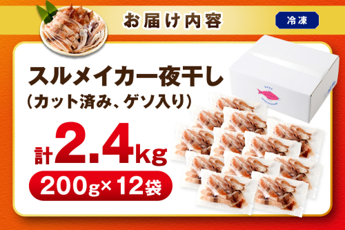 島根県産スルメイカ一夜干しカット済計2.4kg(小分け200g×12袋)産地直送 干物 一夜干し イカ 人気 大容量 小分け 国産 冷凍ストック 【005_2062】