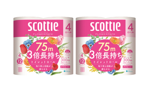【スコッティ】フラワーパック 3倍長持ち 4ロール(ダブル)× 2パック 合計8ロールを定期便でお届けします!