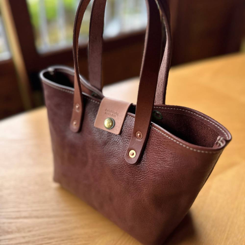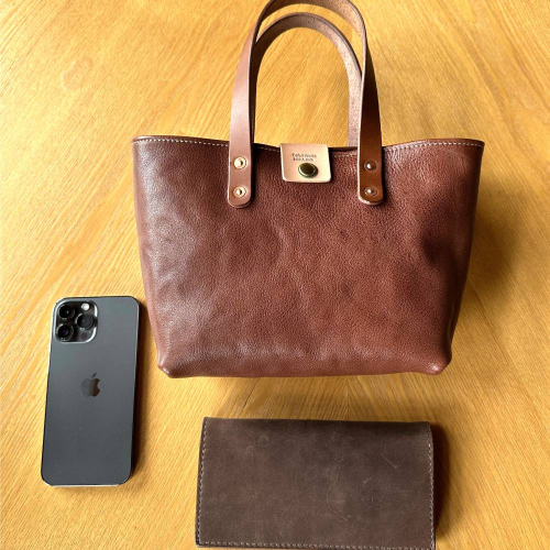 国産牛革のミニトートバッグは軽くて、使うほどに手に馴染み、年月とともに変化する本革ならではの風合いが魅力です。