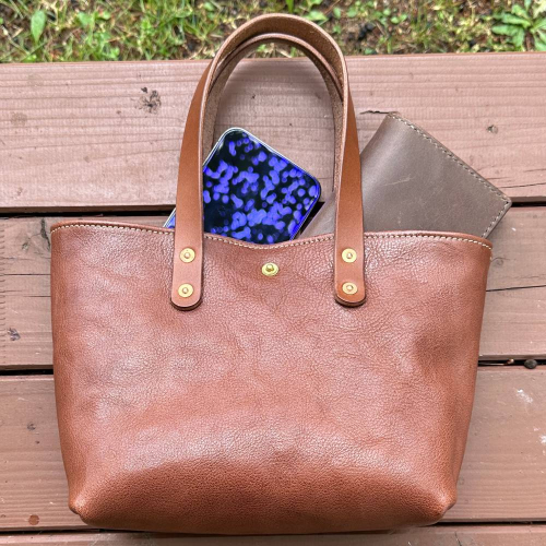 84-8 本革ミニトートバッグ(ブラウン)【レザークラフト】