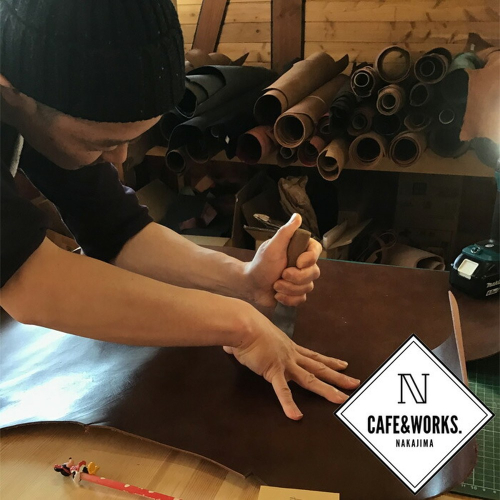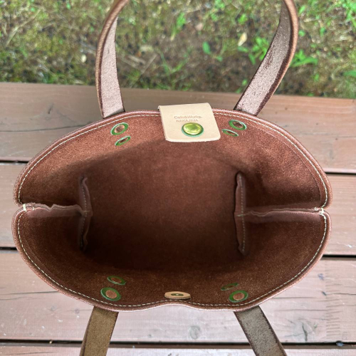 このバッグは、北海道紋別市・大山山頂園で、カフェと革工房のお店を夫婦二人で営んでいるお店で制作しています。