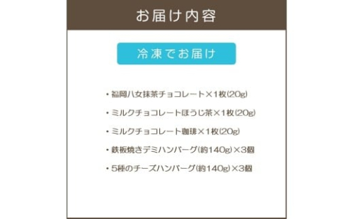 - 鉄板焼ハンバーグ(2種各3個)&カカオ研究所 茶葉のチョコセット【B-205】