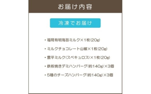 鉄板焼ハンバーグ(2種各3個)&カカオ研究所 お酒に合うチョコ【B2-021】