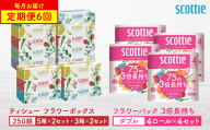 - 【定期便6回】【毎月お届け】【スコッティ】 ティシュー フラワーボックス 250組(5箱パック×2セット)+フラワーパック 3倍長持ち(4ロール(ダブル)パック ×6セット) ティッシュ トイレットペーパー 日用品 ストック