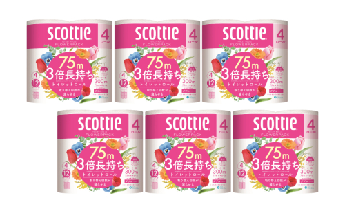 【スコッティ】フラワーパック 3倍長持ち 4ロール(ダブル)× 6パック 合計24ロールを定期便でお届けします!