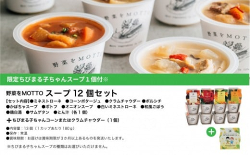 ★期間限定★ レンジで1分 野菜をMOTTO スープ 12個+1個 セット 期間限定 ちびまる子ちゃん コラボパッケージ プレゼント レトルト インスタント 国産 ダイエット ベジMOTTOスープ 具だくさん 時短 手軽◆