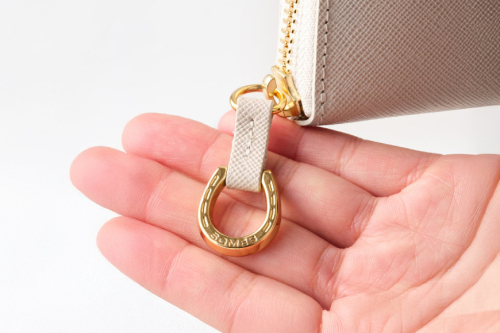 透明感のある革に、幸運のモチーフ蹄鉄を添えた「ピルエット」シリーズの長財布。