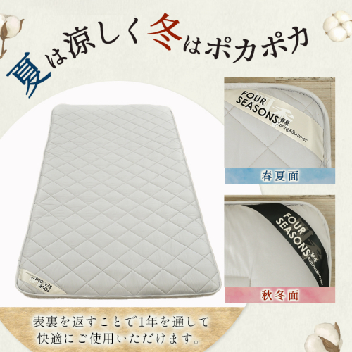 夏は涼しく冬はポカポカ、表裏を返すことで1年を通して快適にご使用いただける敷布団です。