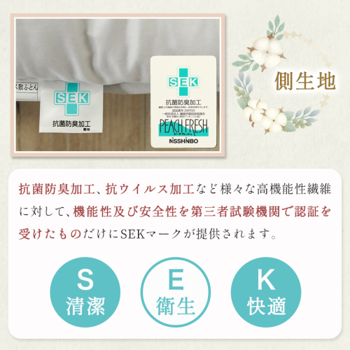 側生地はSEK(抗菌防臭)加工を施した200本ブロードの高密度で手触りの良い綿100%です。