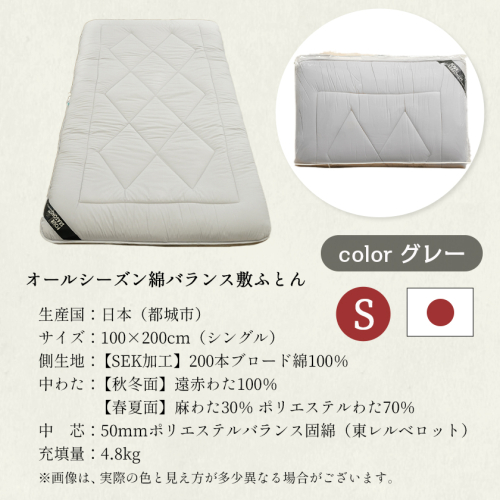 オールシーズン綿バランス敷ふとん(GRAY)【S】≪みやこんじょ快速便≫_AE-E107-R