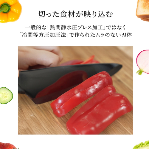 硬度が高く耐摩耗性に優れているため、切れ味が長持ちします。また、セラミックの性質により研ぐ必要がなく、他のキッチン器具と一緒に中性洗剤で洗うだけ。メンテナンスフリーでお使いいただけます。