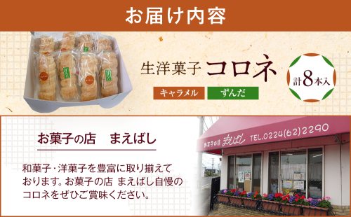 - 生洋菓子 コロネ 2種(キャラメル、ずんだ)計8本