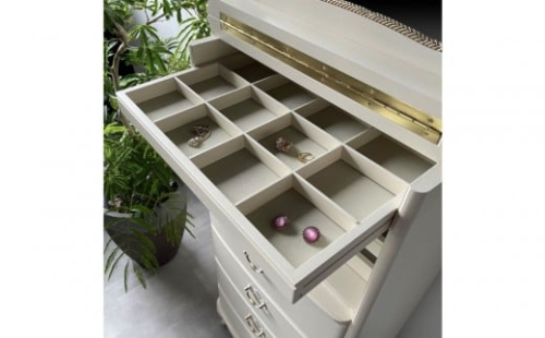 カンティーニュのジュエリーチェストは、収納力の高さとディティールにこだわった機能性も高いチェストです。