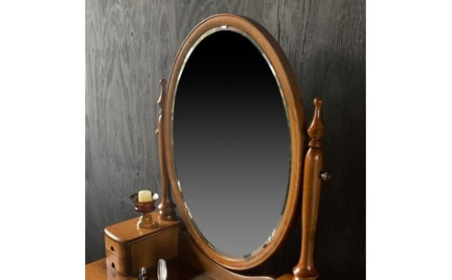 可愛い楕円のミラーがアクセントになった、コンパクトサイズの一面鏡。