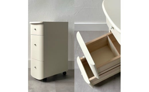 足元に収まるキャスター付きのミニチェストは、細々したものの収納に便利です。 置き場所を選ばない、デザイン性と実用性の2つの要素を兼ね備えた可憐なコンパクトドレッサーがお部屋に華やぎをもたらします。
