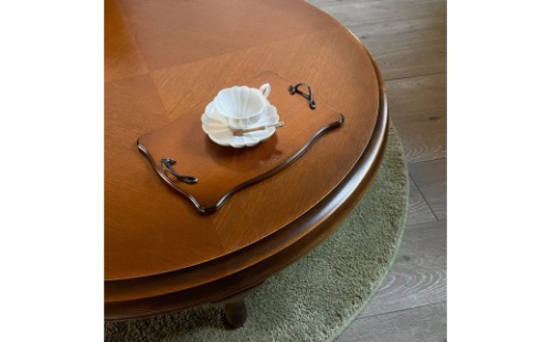 気品ある優雅なたたずまいが人気のダイニングテーブルにぴったりのトレイは、スモールサイズでありながら職人の丁寧な手仕事が表れています。