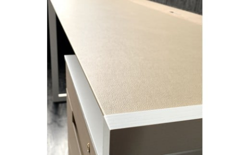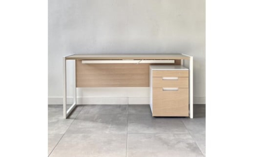 ナチュラルカラーとホワイトカラーの組み合わせがソフトでさわやかな印象のスタイリッシュなデスク。