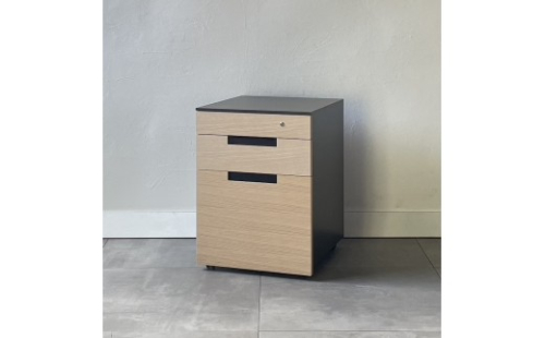 デスクに合わせて作られたキャスター式ワゴンは、収納力も高く トップトレイは鍵付きです。シンプルで合わせやすく、オフィスでもホームユースでもシーンを選ばないデスク&ワゴンです。